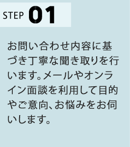 Mies Design Studioでは、丁寧なヒアリングでターゲットやコンセプト、お悩みをお伺いした上で、クライアント様一人ひとりに合ったデザイン提案をします。